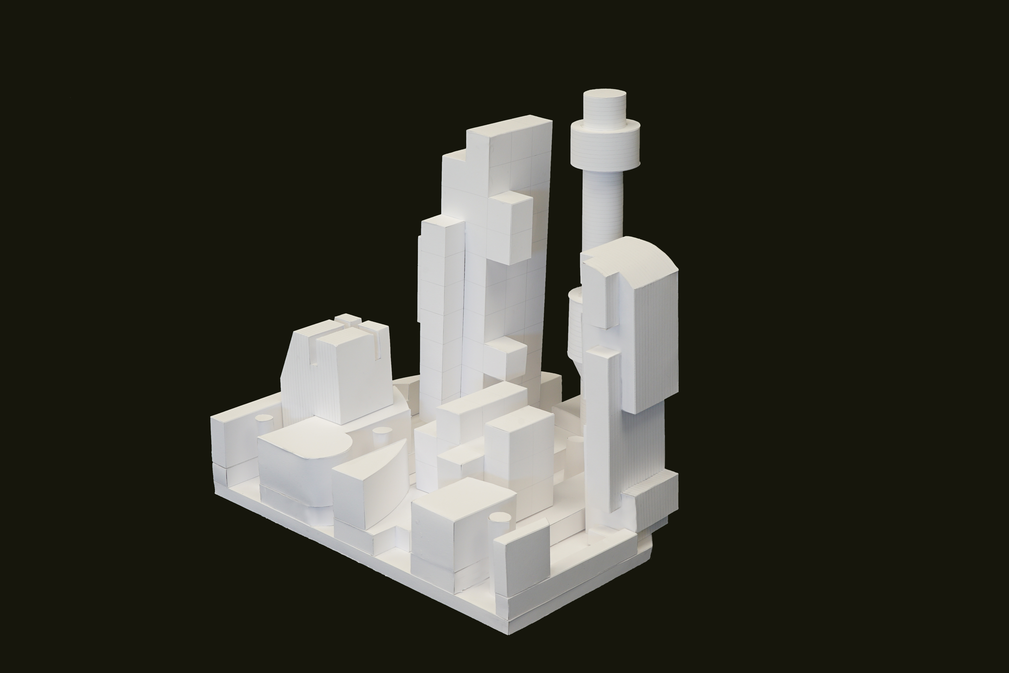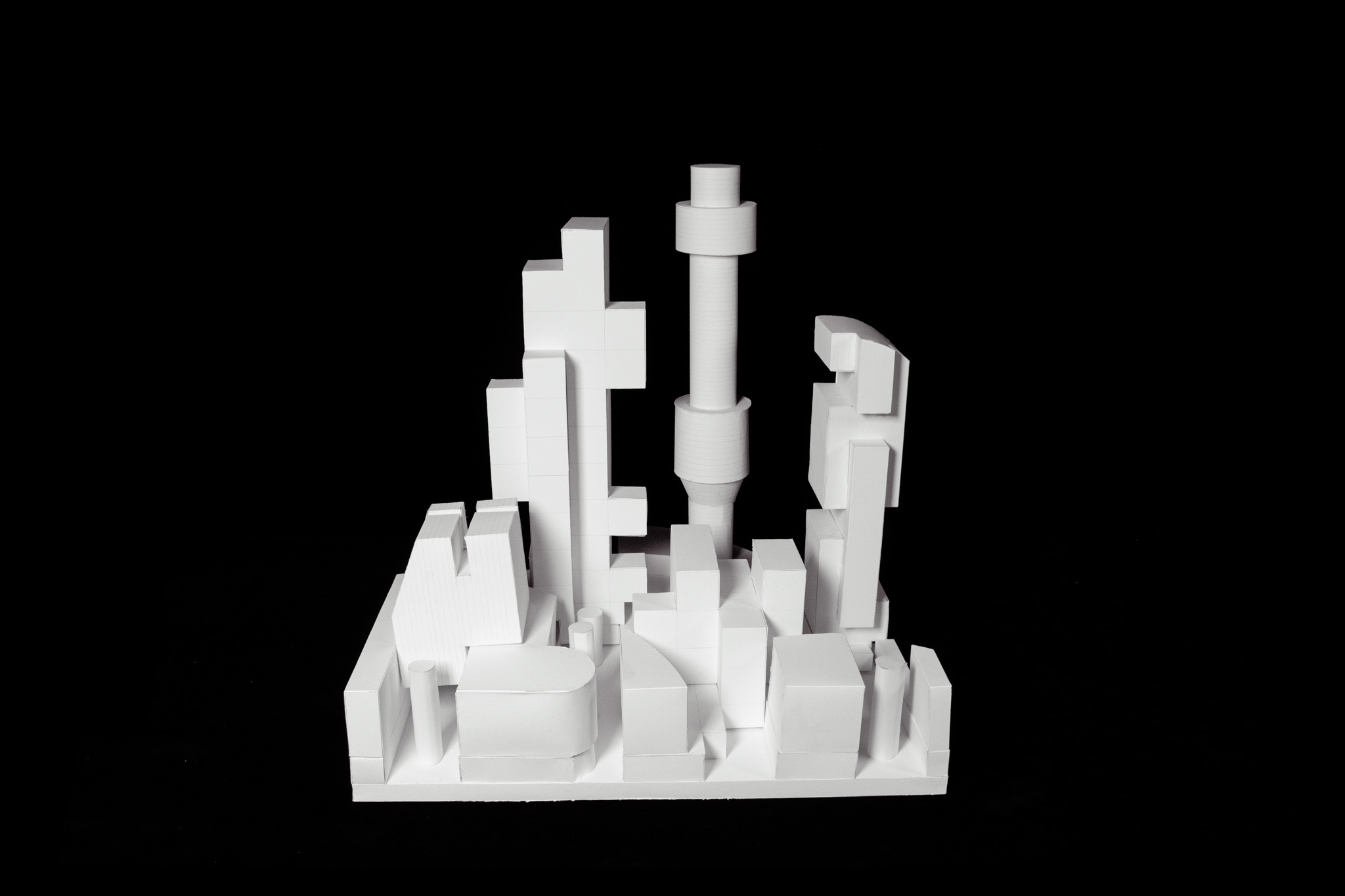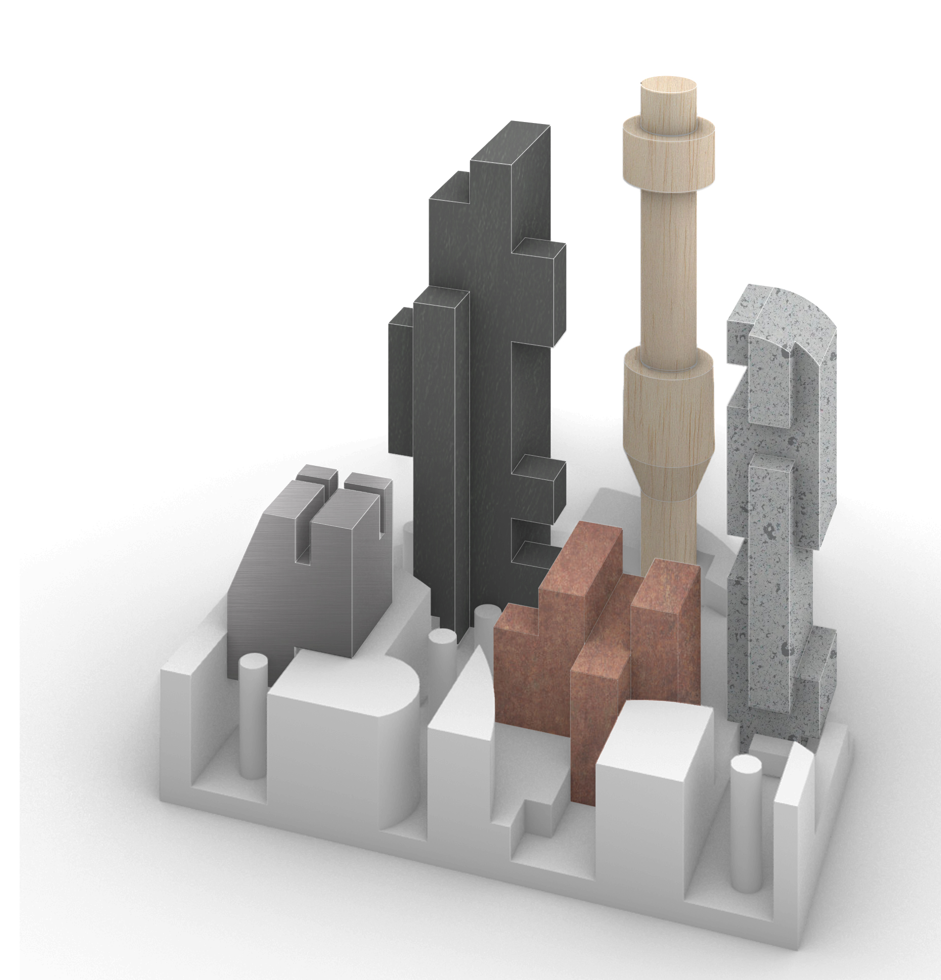 I designed five objects using previous foam carving experience and arranged them compositionally onto my field condition. I applied techniques like bounding box modeling, stacking and stamping, developable revolved objects, and spherical envelopes.